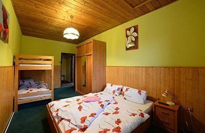 Dvou až čtyřlůžkové pokoje s příslušenstvím WC, sprcha. (čtyřlůžkový pokoj je s palandou).