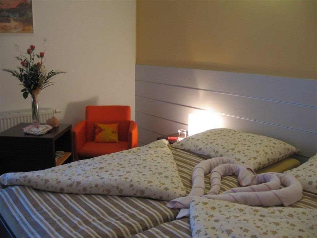 dvoulůžkové pokoje se sprchou a WC, TV/SAT, lednice, telefon, balkon, wi-fi připojení na internet v každém pokoji. Na vyžádání bezbariérový pokoj a pokoje s klimatizací za příplatek.