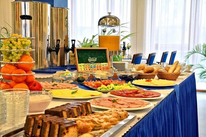 polopenze - snídaně formou švédských stolů, obědy i večeře servírované s výběrem ze tří menu . Na vyžádání - speciální diety (redukční, vegetariánská, šetřící apod.). Při plné penzi pobyt začíná obědem a končí snídaní.