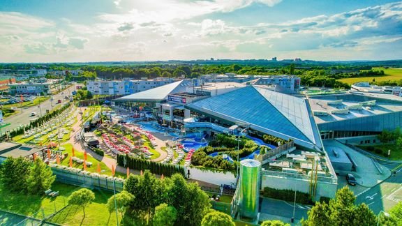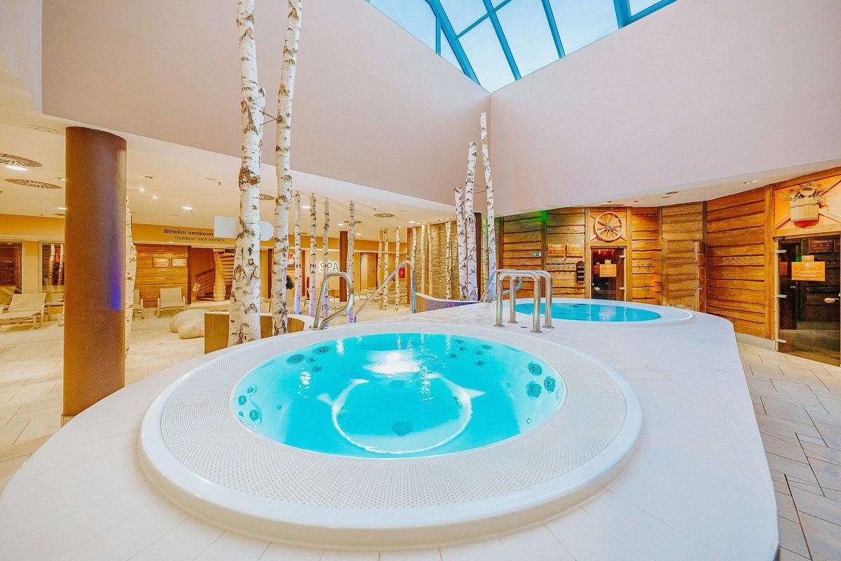 Největší wellness resort ve střední Evropě na ploše 9000 m2 zahrnuje Vodní svět se 3 paláci a 12 tobogány, whirlpooly, bazény, pomalou a venkovní divokou řekou. Unikátní Saunový svět se 14 druhy římských a finských saun, bazénem, aromatickými sprchami, umělým ledem apod.