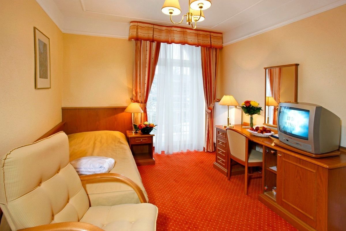 Jedno- a dvoulůžkové pokoje Komfort - sprcha, TV SAT, telefon, Wi-Fi, minibar, sejf, fén, župan. Některé pokoje s výhledem na centrum města (za příplatek)