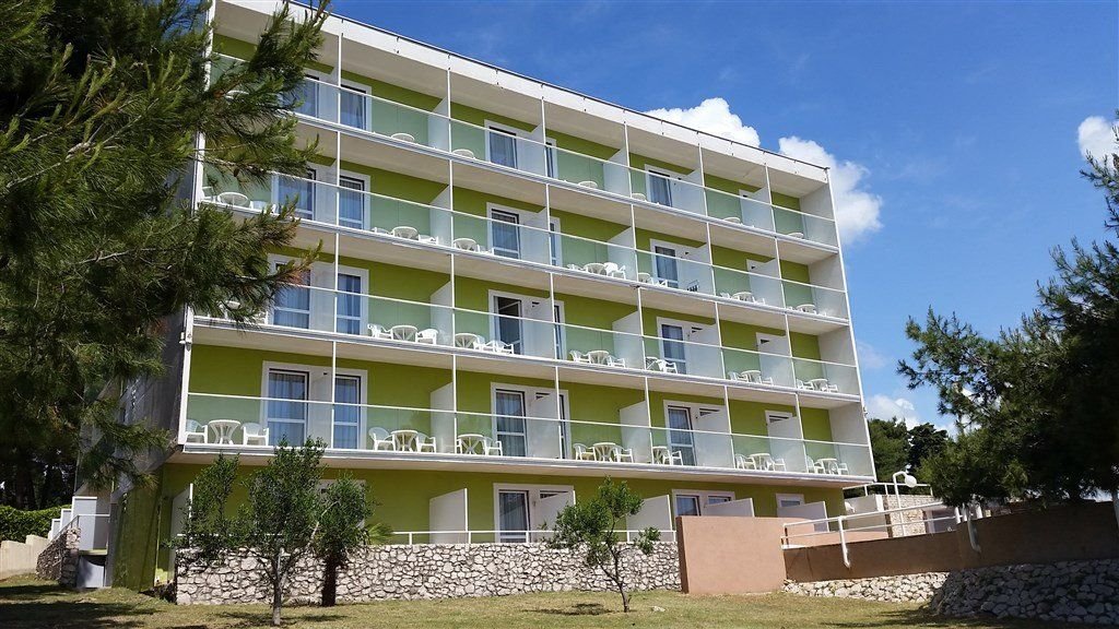 Komplex hlavní budovy a depandance je umístěn v borovém háji na poloostrově cca 300 m od historického centra živého letoviska Vodice s množstvím restaurací, barů a kaváren. Parkování automobilu za poplatek 5 EUR/den.