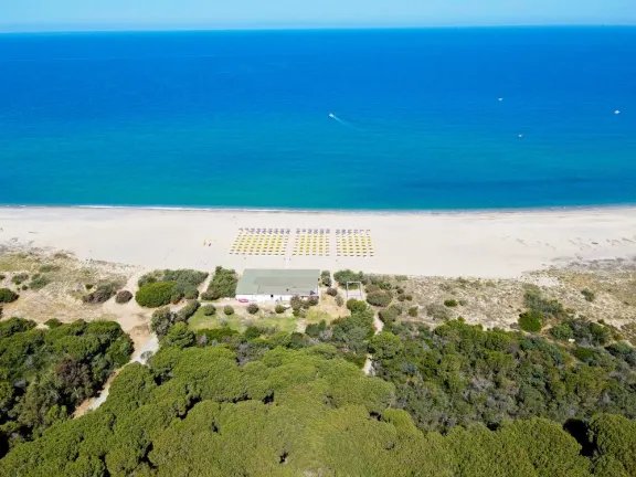 •písčitá pláž z písku a jemného štěrku je od hotelu oddělena pouze místním piniovým a eukaliptovým lesem