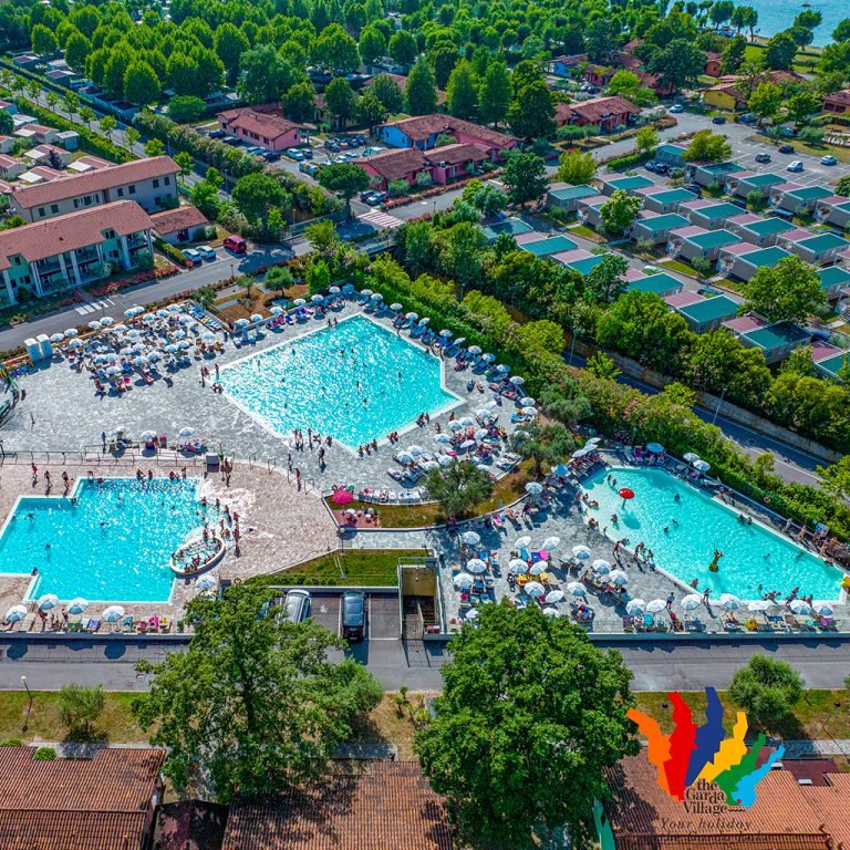 Camping Garda Village je prostorný a dobře vybavený kemp u jižního břehu jezera Lago di Garda, asi 3,5 km od historického centra Sirmione, leží v zeleni na ploše kolem 16 ha. Nabízí ubytování v bungalovech a mobilhomech, jakož i vyhrazenou plochu pro karavany – všechny se sociálním zázemím, elektřinou a připojením. K dispozici jsou tři bazény (včetně dětského a vířivky), soukromá pláž u jezera, sportoviště (fotbal, tenis, plážový volejbal, minigolf atd.) a bohatý animační program pro děti i dospělé.