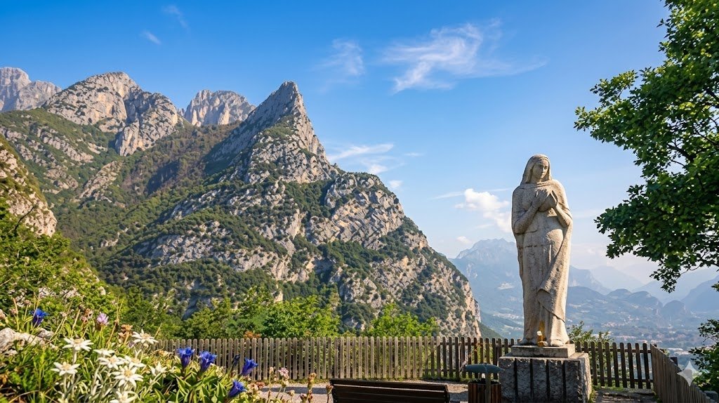 Popis: Z hotelu projedete kolem jezera do Moliny a pak prudším sjezdem do vesničky Prè. Odtud se napojíte na horní část cesty Ponale a vystoupáte do Pregasiny. Tam se vyfoťte u sochy Madonny s výhledem na celou Gardu. Návrat stejnou cestou (výšlap z Prè do Moliny prověří fyzičku, ale je to krátké).