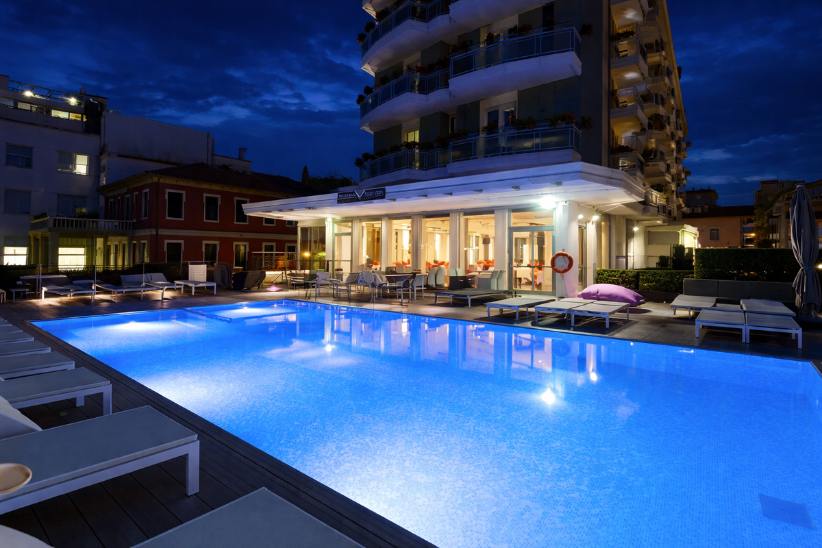 Elegantní 4* hotel přímo u pláže v srdci oblíbeného letoviska Lido di Jesolo nabízí ideální kombinaci pohodlí, výhledu na moře a skvělé polohy. Všechny pokoje mají balkon s výhledem na moře a hotel poskytuje privátní plážový servis pro maximální pohodlí u vody. Hotel je díky své poloze ideální pro rodiny i páry, kteří chtějí kombinovat relaxaci na pláži s atrakcemi živého letoviska Jesolo – promenáda plná kaváren, obchodů a restaurací je hned za rohem.