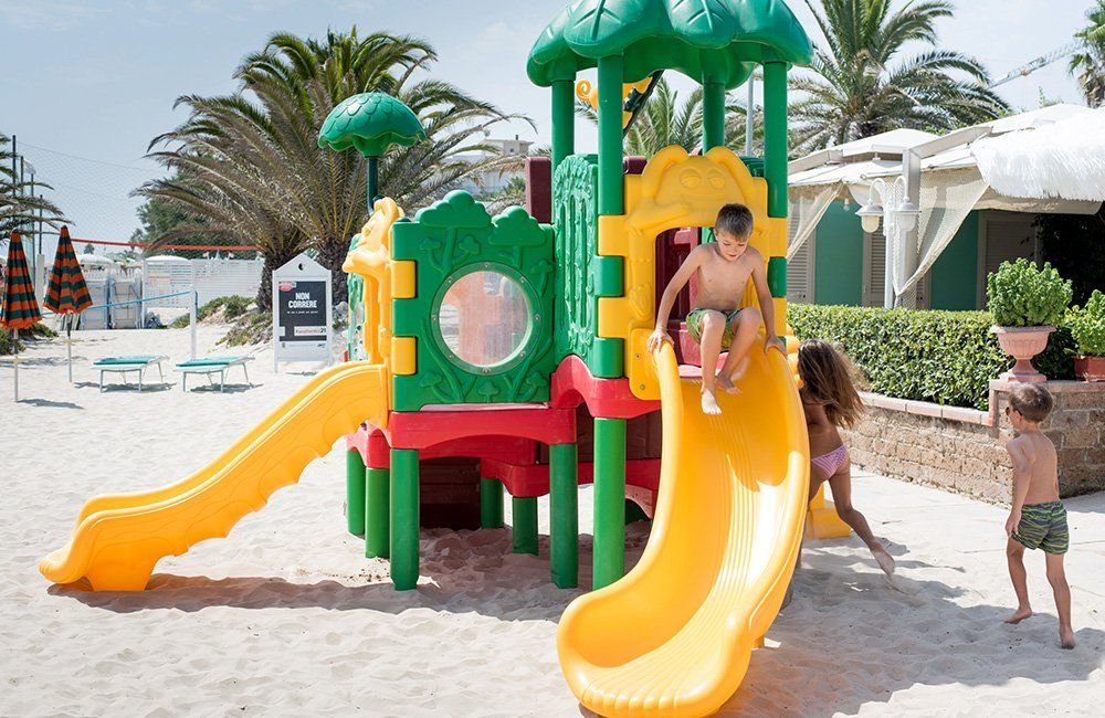 Písčitá pouze 20 m od residence, plážový servis je zahrnutý v ceně (1 slunečník a 2 lehátka/křesílka). Další plážový servis je za poplatek cca 100 € za týden (cena se v průběhu sezóny může změnit).