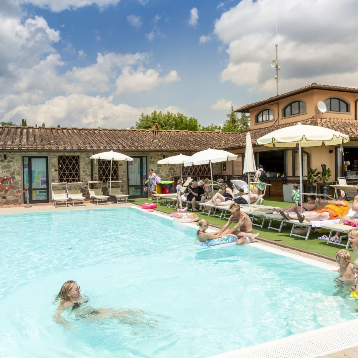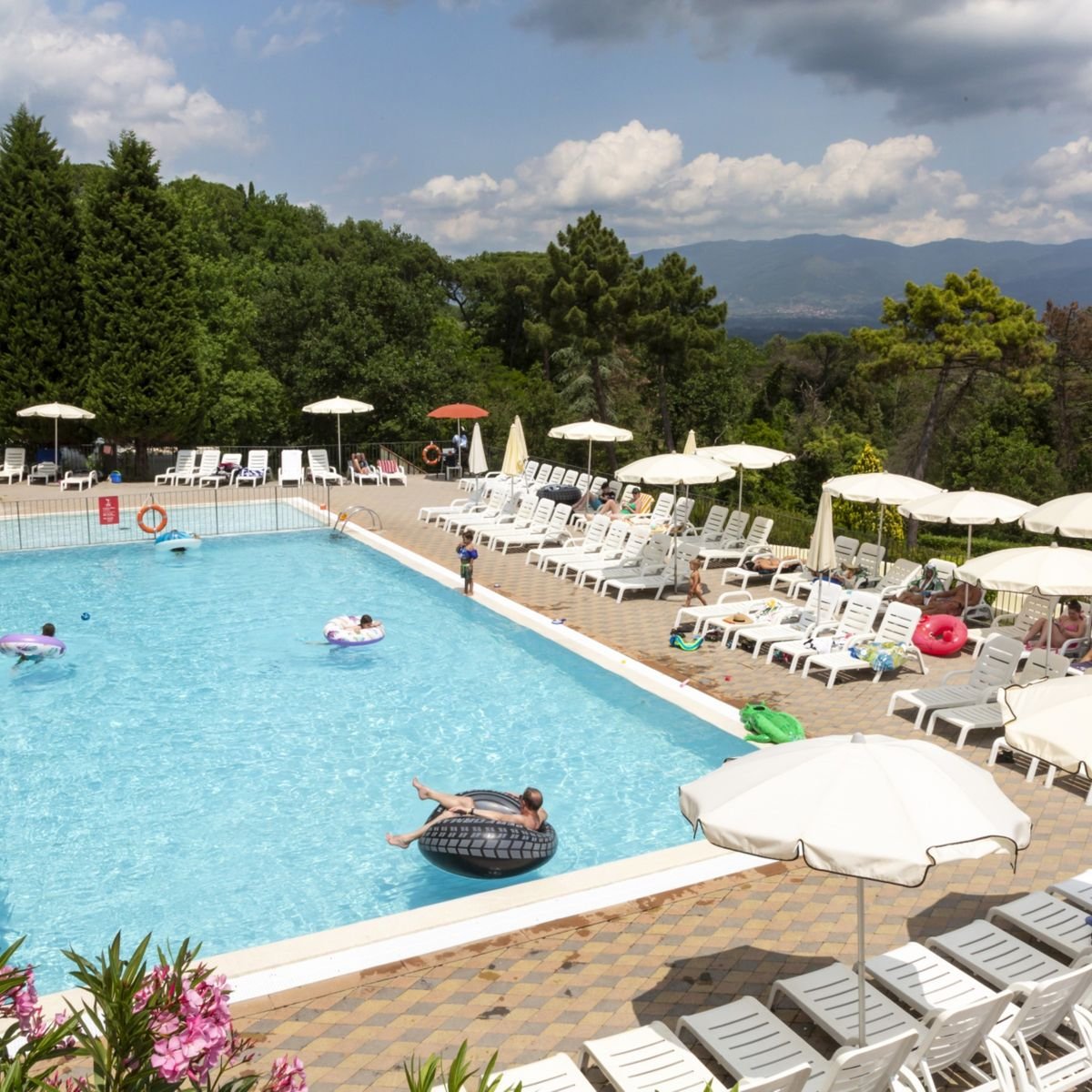 Resort Hu Norcenni Girasole Village je velký rodinný prázdninový resort a kemp v toskánských kopcích u města Figline e Incisa Valdarno, s výhledem na vinice oblasti Chianti. Areál nabízí rozsáhlé vodní atrakce včetně dvou vodních parků a bazénů se skluzavkami a „línou řekou“, sportovní zařízení jako tenisové a fotbalové kurty, adventure park, minigolf, animační programy, restaurace, bary i obchody. Ubytování je variabilní – od mobilních domů přes glamping stany až po apartmány, a vybavení zahrnuje kuchyňský kout, sociální zařízení i venkovní terasy. Poloha v srdci Toskánska umožňuje snadné výlety do historických měst jako Florencie, Siena nebo Pisa. Resort je zvlášť vhodný pro rodiny s dětmi i teenagery díky bohatému programu, vodním hrám a bezpečnému prostředí, ale pobaví i milovníky sportu či aktivní dovolené v přírodě.