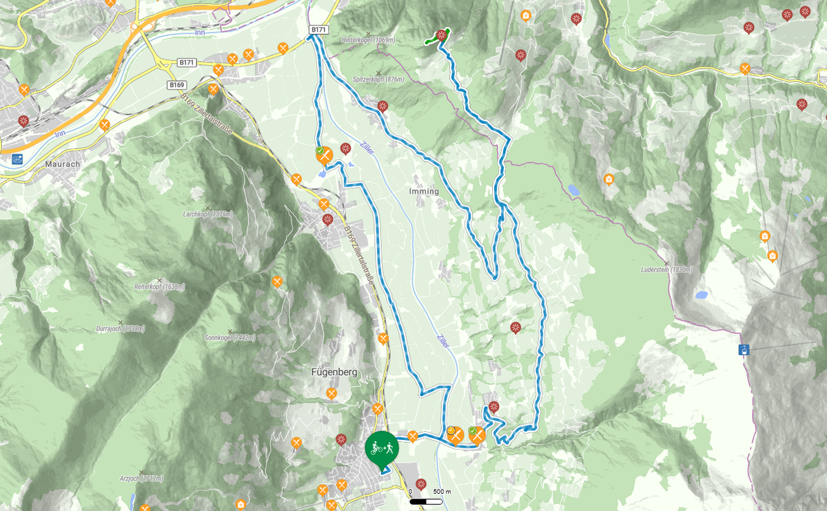 Cyklistický návrat do Fügenu vede po trase přes Geolsalm a Äußerer Fügenberg. Sportovně založení účastníci mohou trasu ještě zpestřit odbočkou k horní stanici lanovky Spieljochbahn, kde se nachází restaurace s grandiózním výhledem.