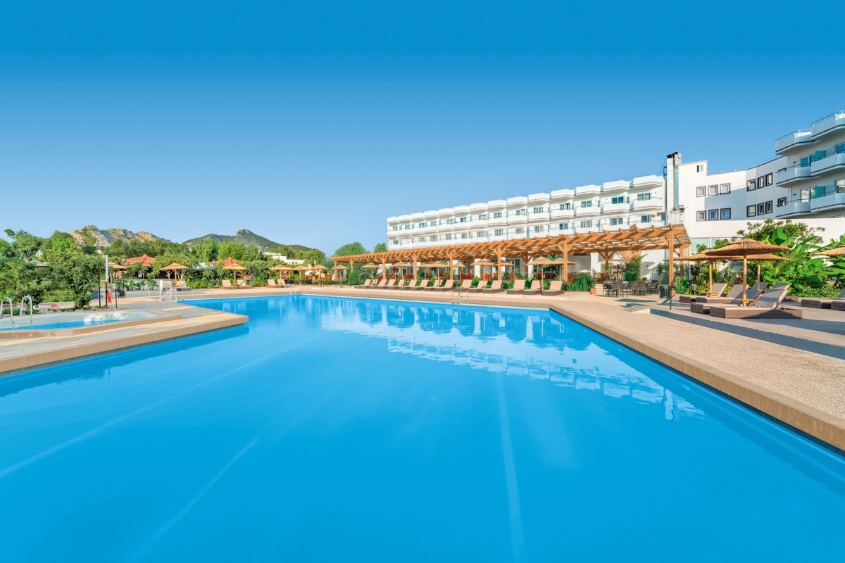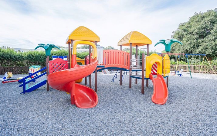 Prázdninový komplex, nově zrenovovaný v zimě 2025/2026 je obklopený rozlehlými zahradami se středomořskou vegetací a stinnými palmami.
