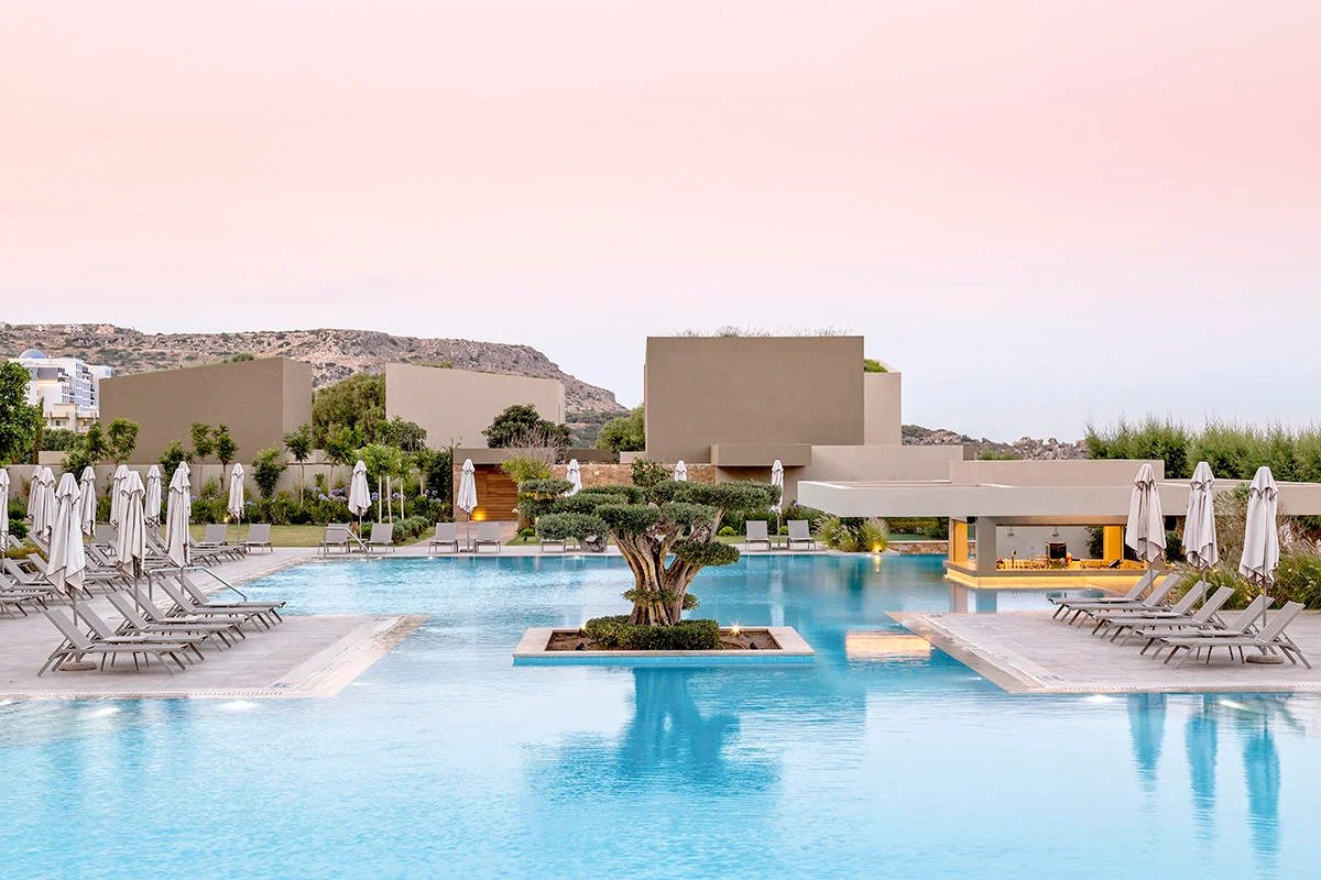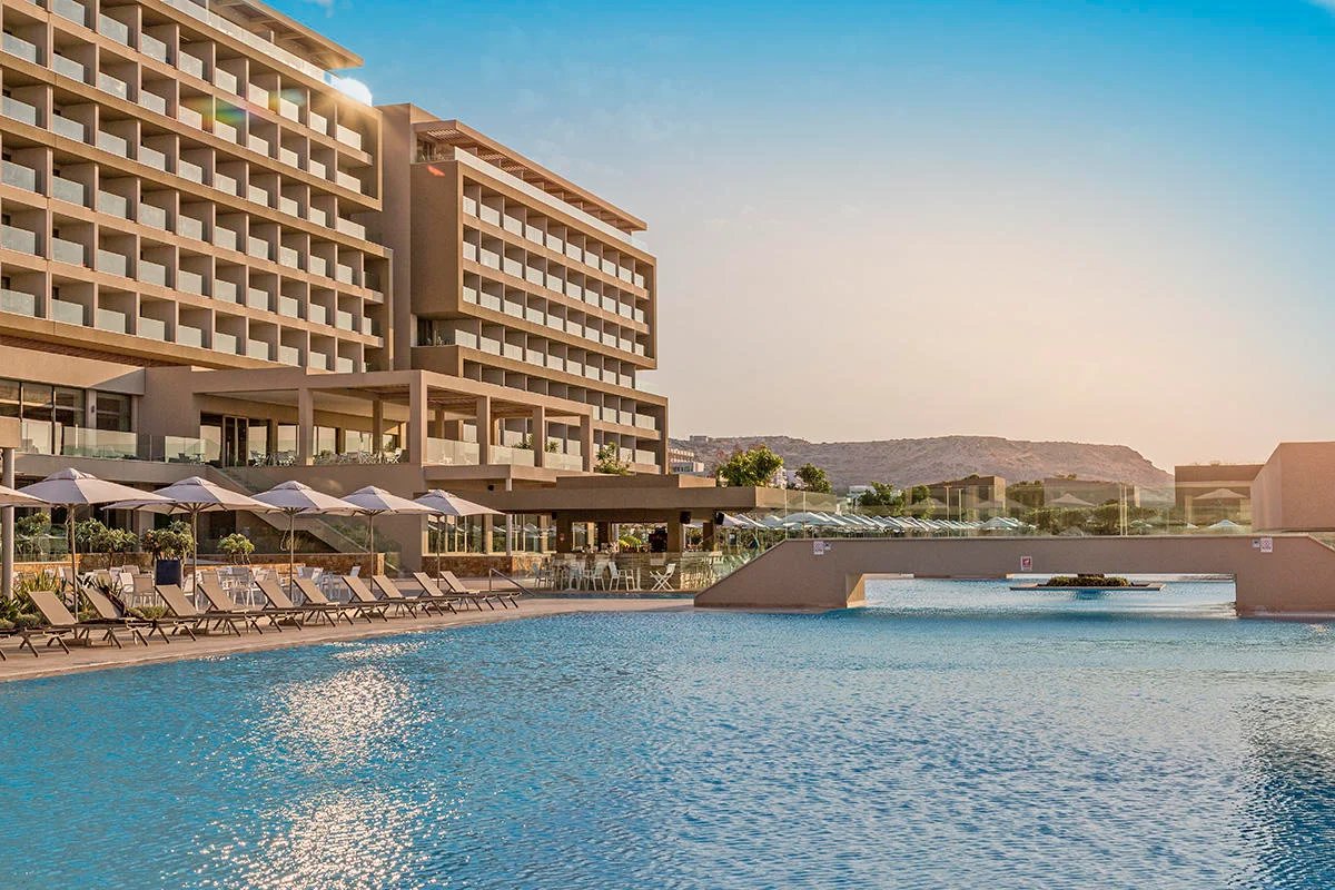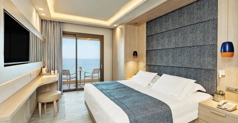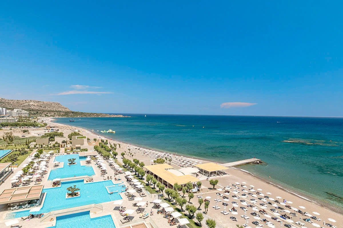 Hotel se nachází přímo u oblázkovo-písčité pláže ve středisku Faliraki.
