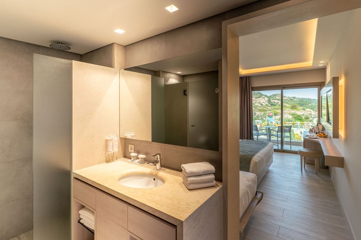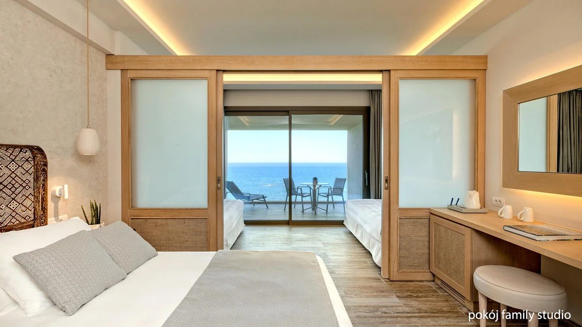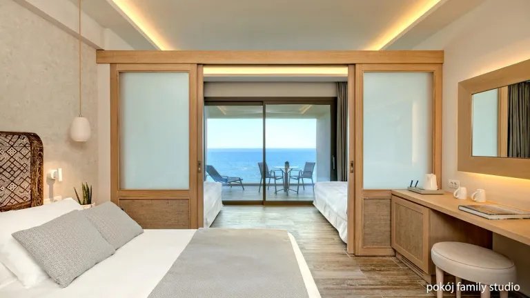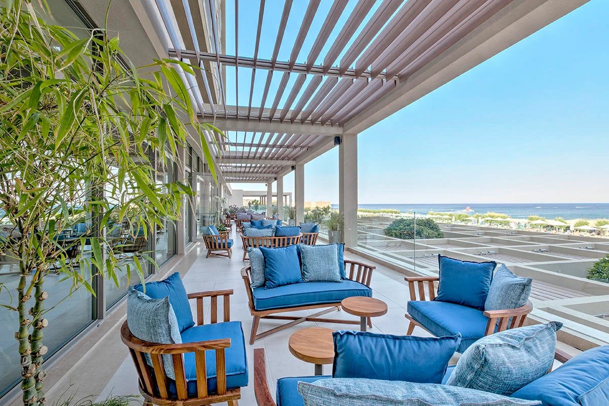 Hotel se nachází přímo u oblázkovo-písčité pláže ve středisku Faliraki.