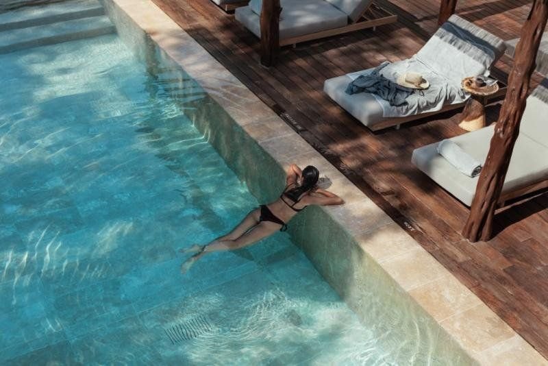 Pokoj typu Swim up je prostornější, má terasu, navíc umožňuje přístup do bazénu sdíleného se sousedními pokoji.
