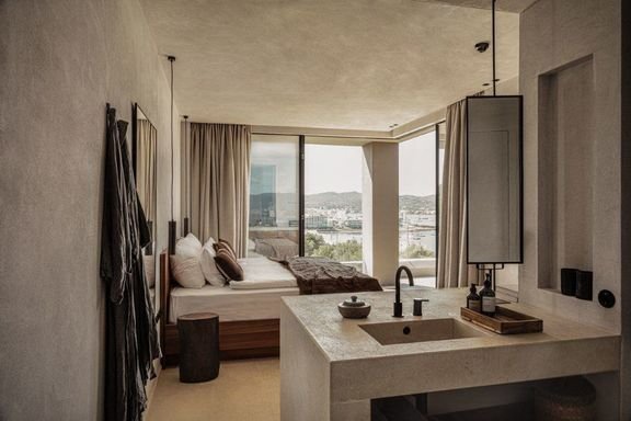 Junior Suite je prostornější, navíc má kamennou vanu, větší bakon s výhledem na bazén.