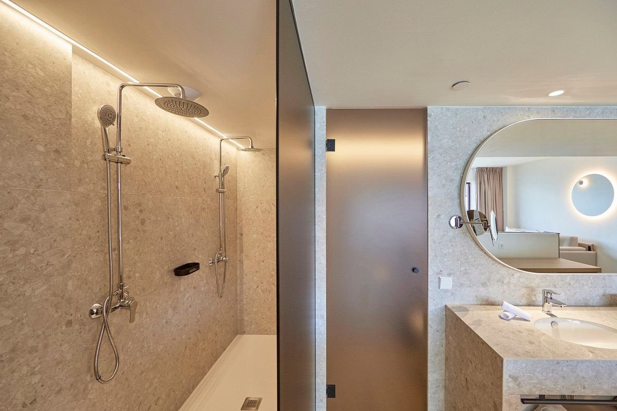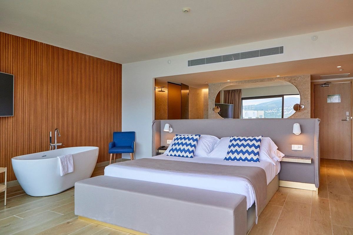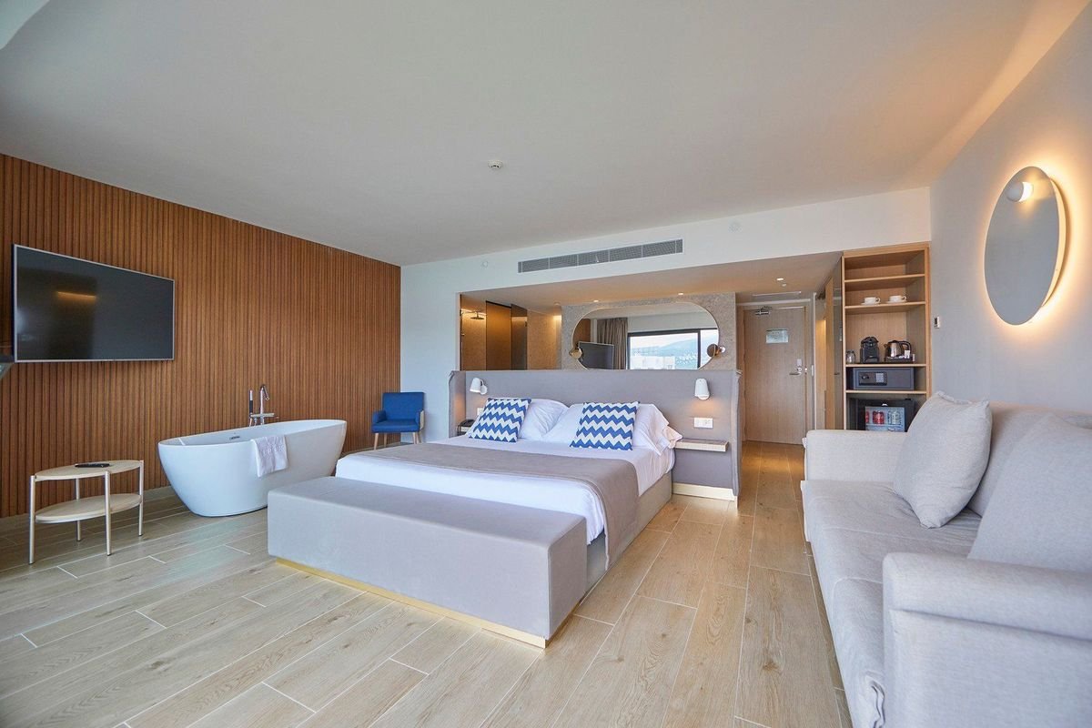 Standardní pokoje pro dva jsou vybaveny vlastní koupelnou (sprcha, WC, fén), klimatizací, minibarem (doplění za poplatek), telefonem, trezorem za poplatek, s balkonem s výhledem do okolí. Za příplatek pokoje s výhledem na moře.