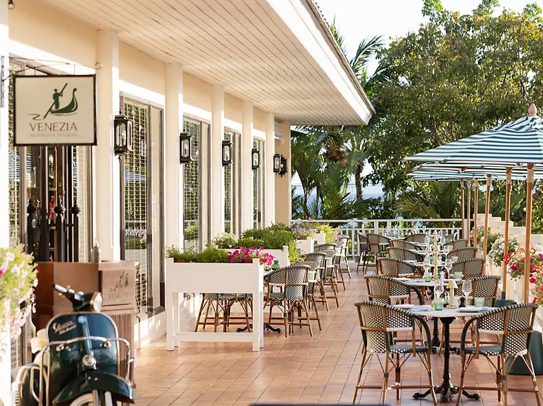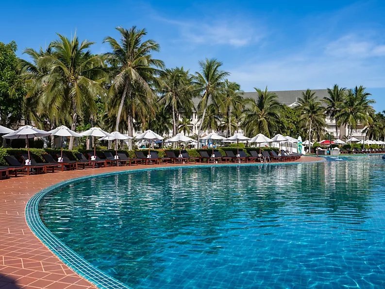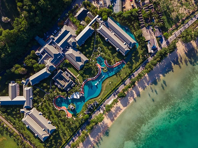 Luxusní hotel se nachází v první linii od pláže sestupující k tyrkysovému oceánu.