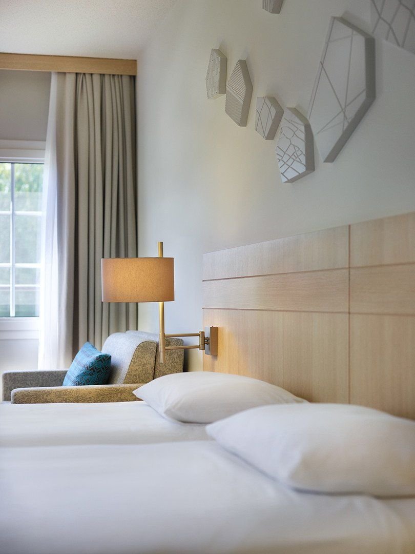 Standardní pokoje v hlavní budově bez možnosti přistýlky, mají vlastní příslušenství (koupelna, vysoušeč vlasů, WC), klimatizaci, TV/sat., minibar (po příjezdu doplněn vodou), trezor (zdarma), set na přípravu kávy/čaje, WiFi (zdarma), balkon nebo terasa. Za příplatek lze větší pokoje Comfort v halvní budově s maximální možnou obsazenností 3+1 (díte do 11,99 let) nebo pokoje standard ve vilce s maximální možnou obsaqzenností 3+0.