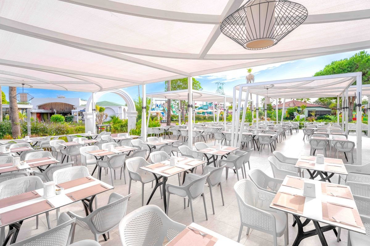 Ultra all inclusive zahrnuje snídaně (7:00-10:00), obědy (12:30-14:00), večeře (19:00-21:00) formou bufetu, pozdní snídaně, občerstvení během dne, zmrzlina (14:00-16:00), gozleme (12:00-16:00)