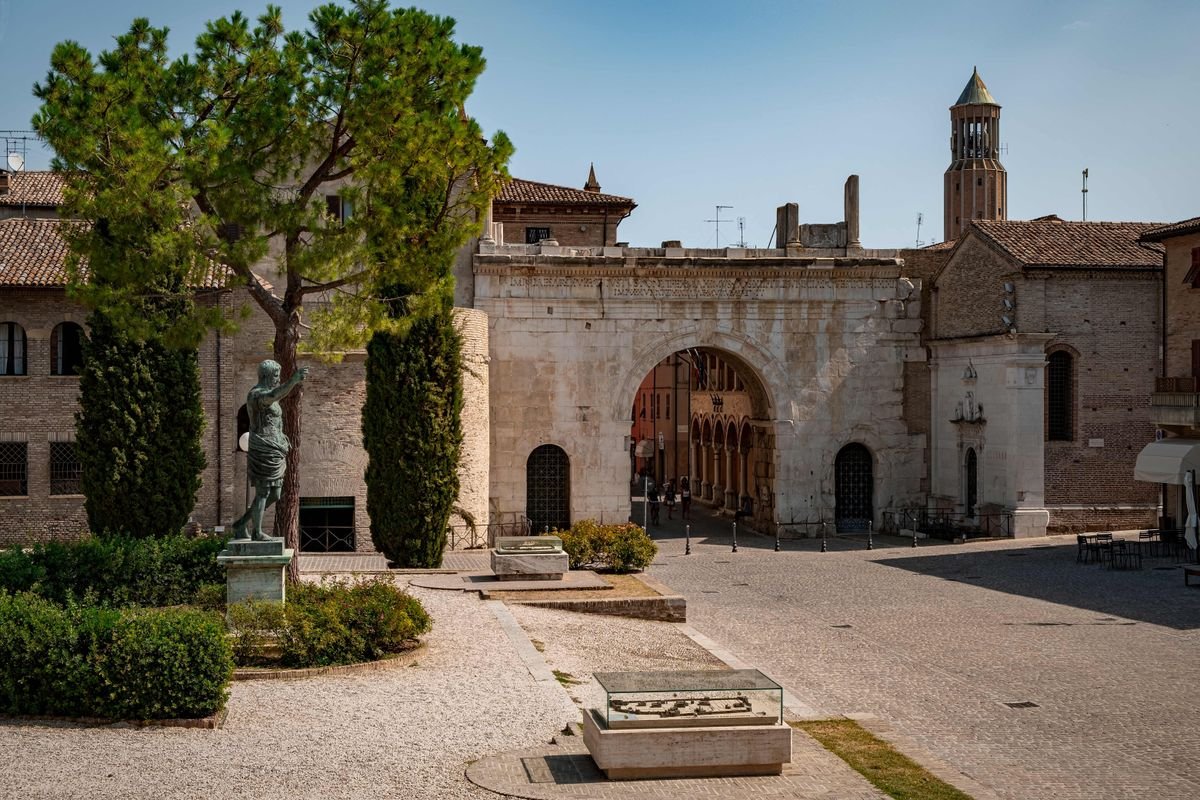 První den se skupina setká s průvodcem na letišti, odkud společně odletí do Itálie. Po příletu je zajištěn transfer do hotelu v Pesaru. Po ubytování mají účastníci volný čas k odpočinku nebo  krátké procházce po okolí. Večer je připravena večeře a následuje nocleh.